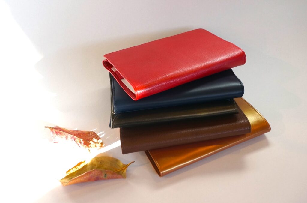 Book cover / Material: 山羊革 size: w 11× h 16.5 × 約3cm(文庫サイズ)price: ¥3300 (shop販売)